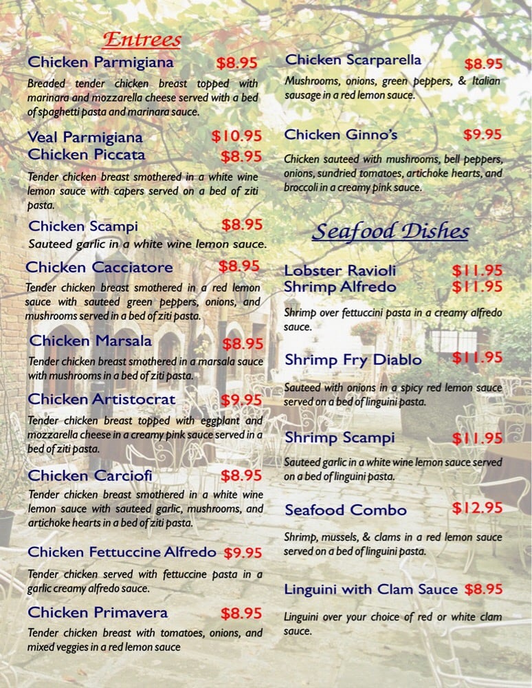 Ginnos Italian Restaurant in Cameron, TX is a hidden gem with a cozy, old Italian town-themed dining room. The restaurant offers a variety of classic Italian dishes such as calzones, ravioli, tortellini soup, and chicken Ginno's, all served in generous portions. The food is described as flavorful and delicious by customers who praise the sauce, veggies, and pasta. The homemade rolls and dressings are also standout items on the menu. The friendly and attentive staff contribute to a pleasant dining experience, making Ginnos a must-visit for Italian food enthusiasts. Whether you're passing through town or a local looking for a taste of authentic Italian cuisine, Ginnos Italian Restaurant is worth a stop for a satisfying and memorable meal.